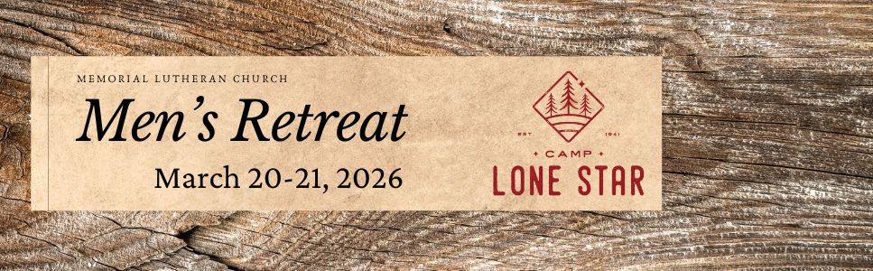 Mar 20-21, 2026 The Memorial Lutheran Church Katy Men’s Retreat is at Camp Lone Star in La Grange, Texas.